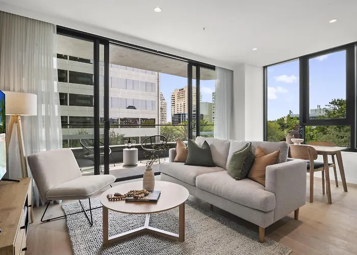Located within 3 km of ACMI, the spacious Brand New City Apartment With Pool & Gym Access Melbourne is approximately 10 minutes' drive from a top family-friendly place like the interactive multilevel SEA LIFE Melbourne Aquarium. The apartment boasts a sauna and an indoor pool offering a more peaceful experience.